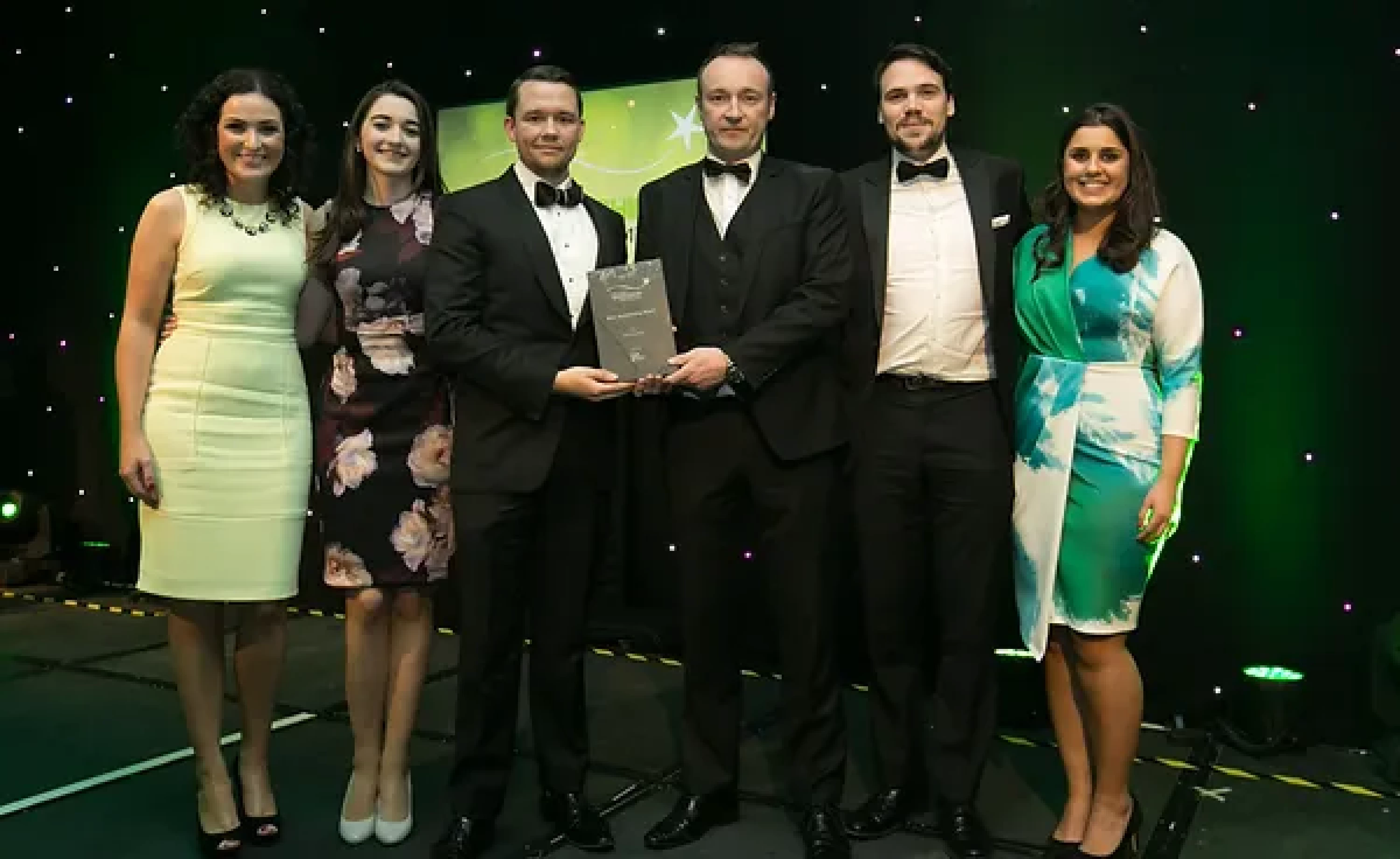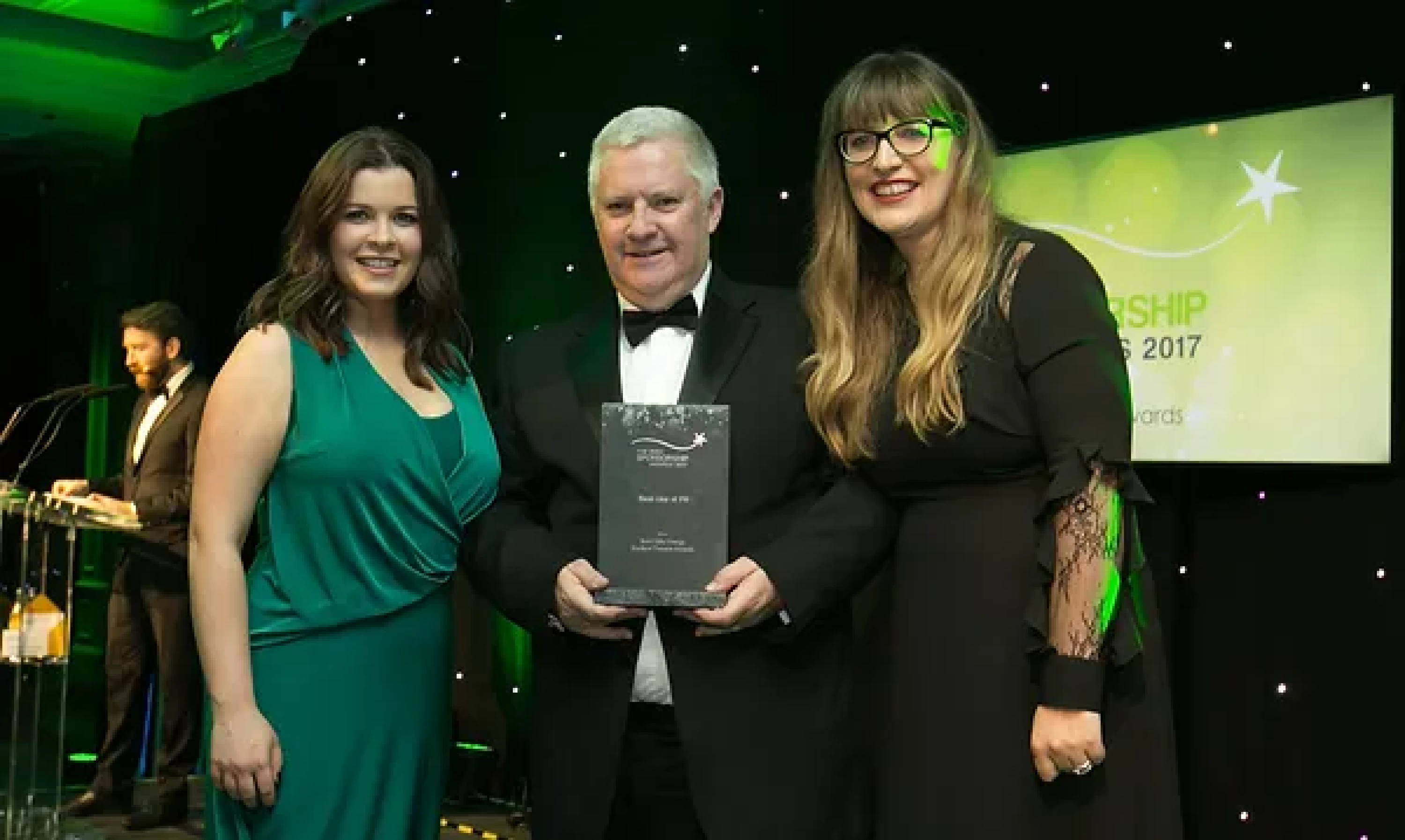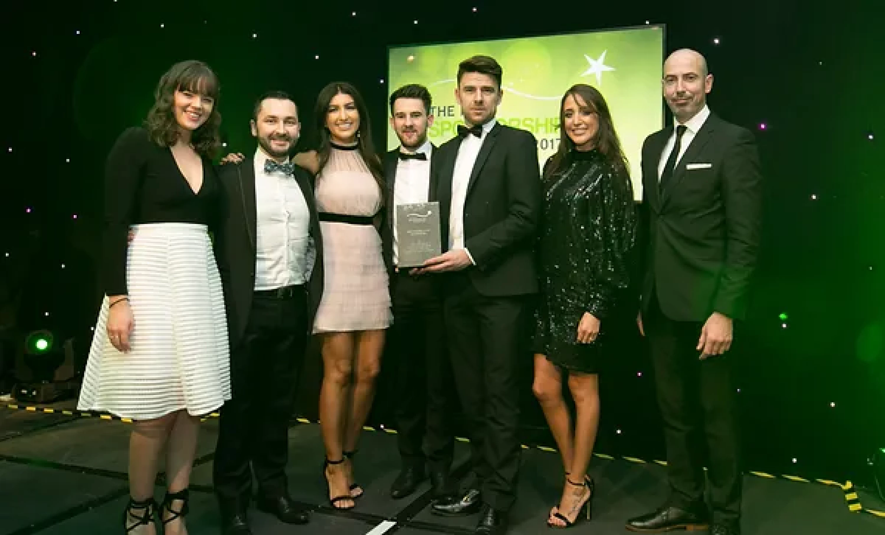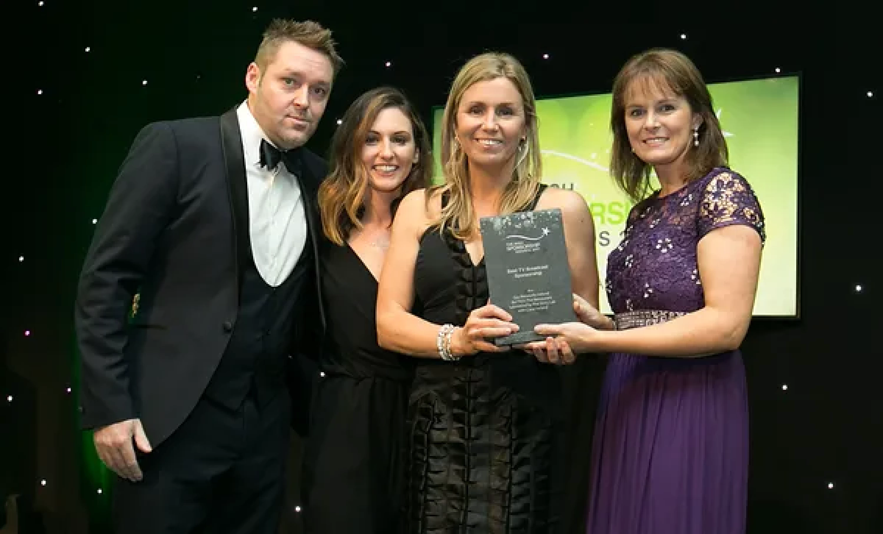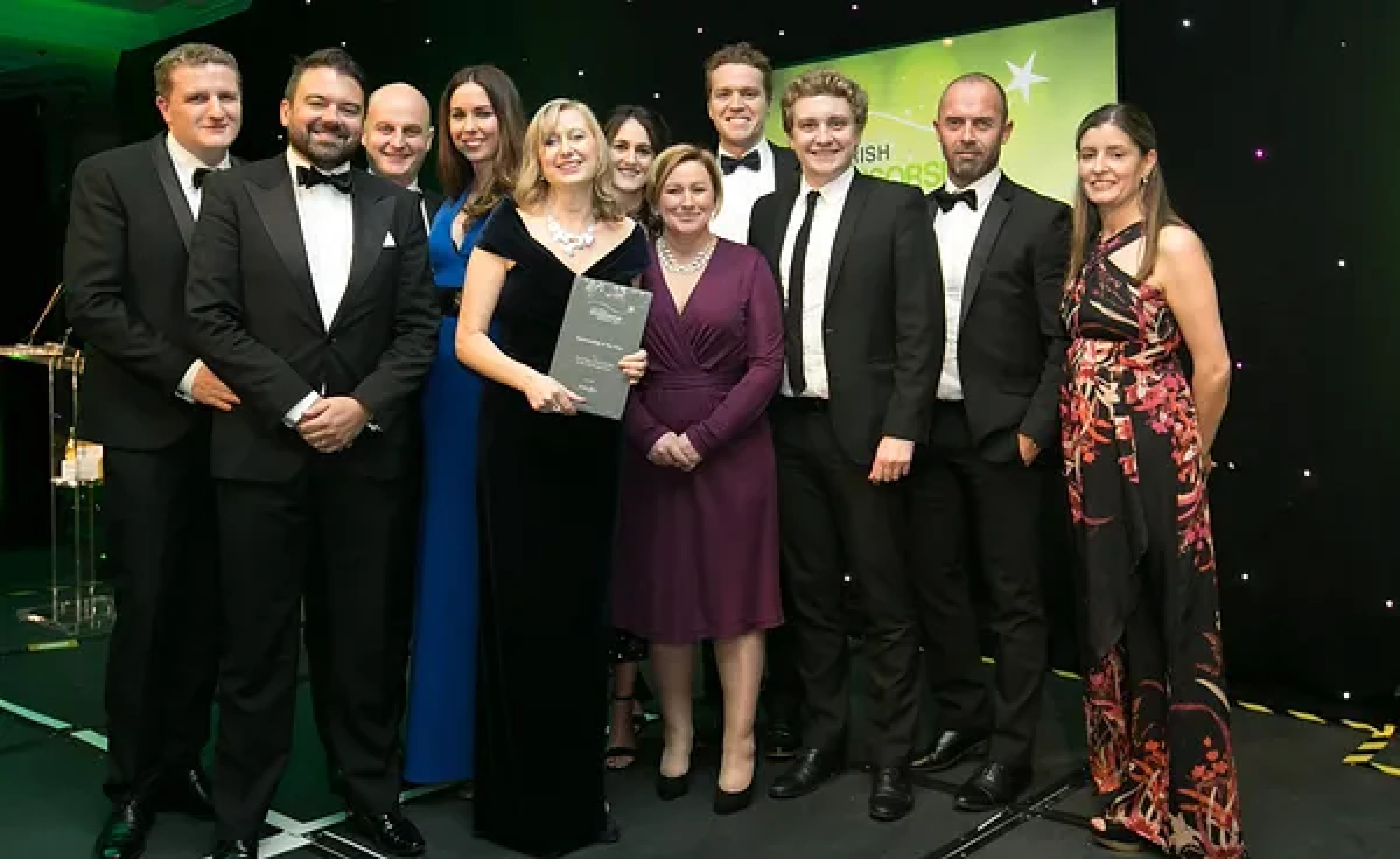 Sean McAuliffe, Co-Founder & Director, Sport Collective, presents the Best Sporting Event Sponsorship award to Littlewoods Ireland and Legacy Consultants team.