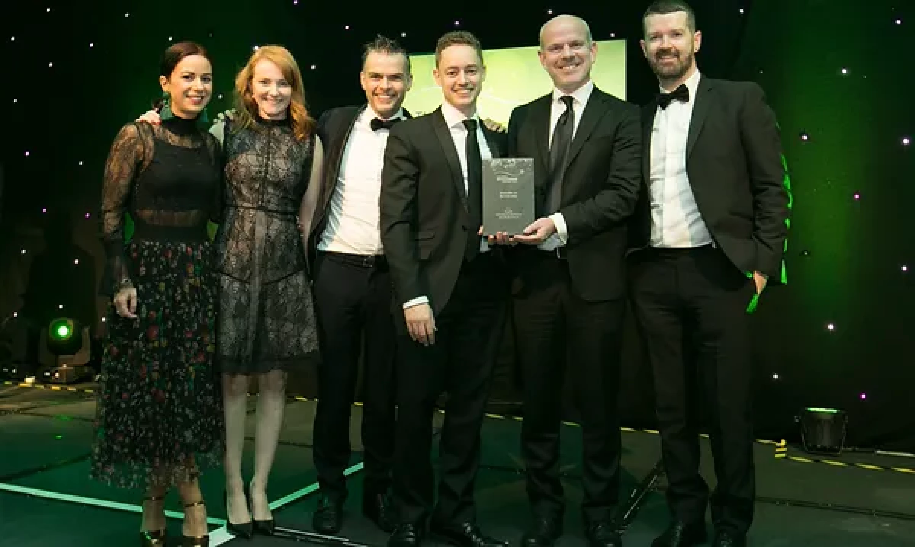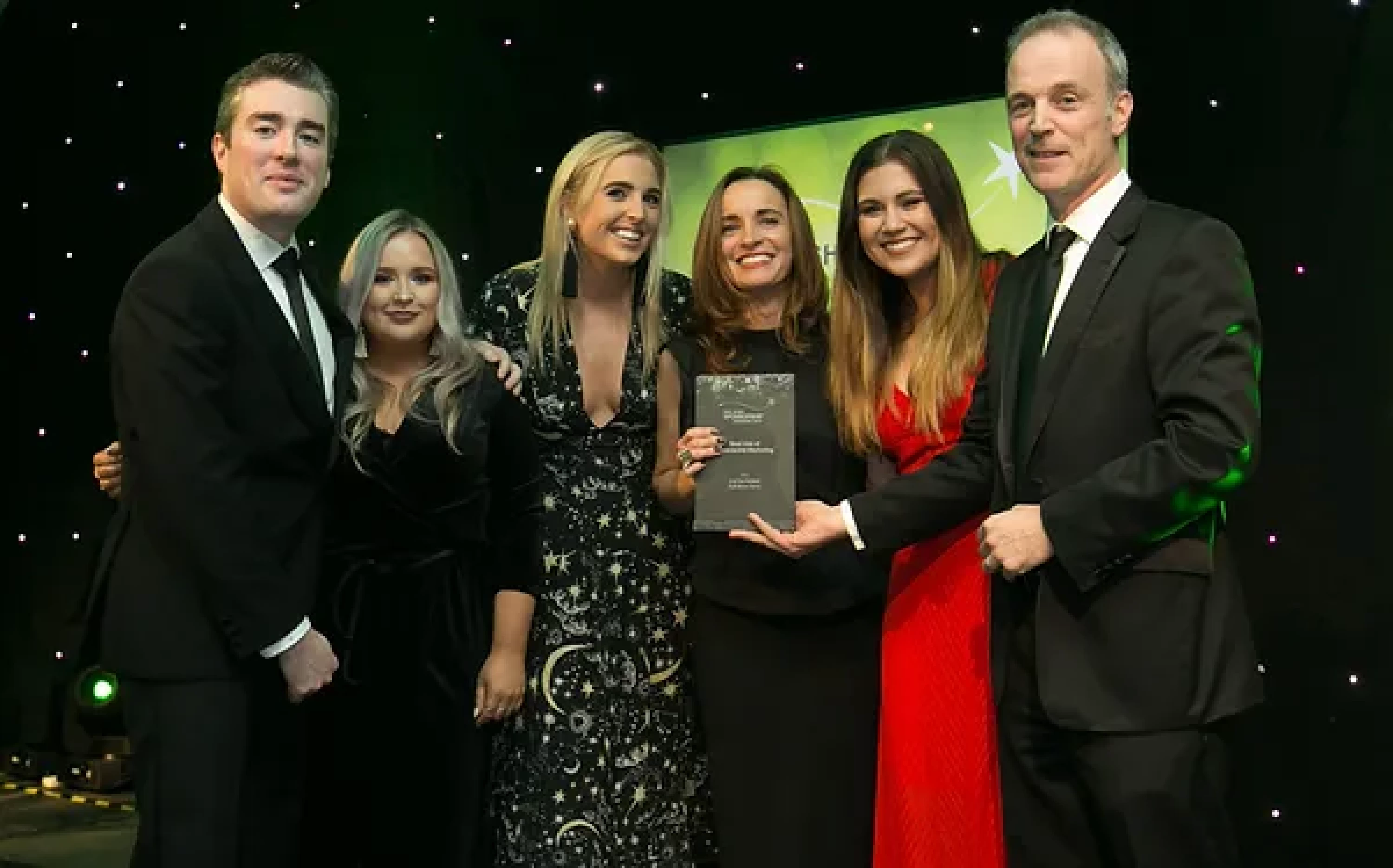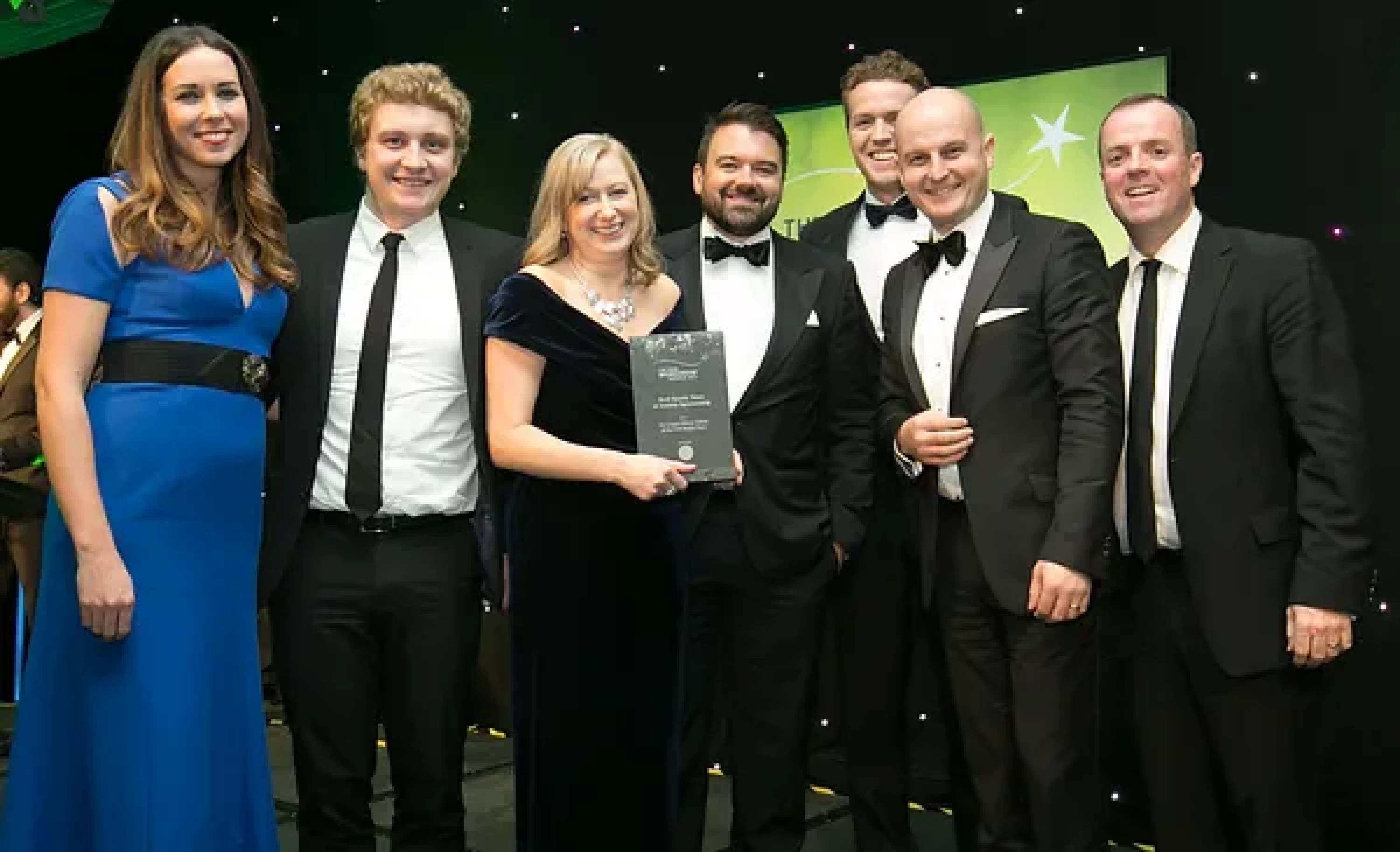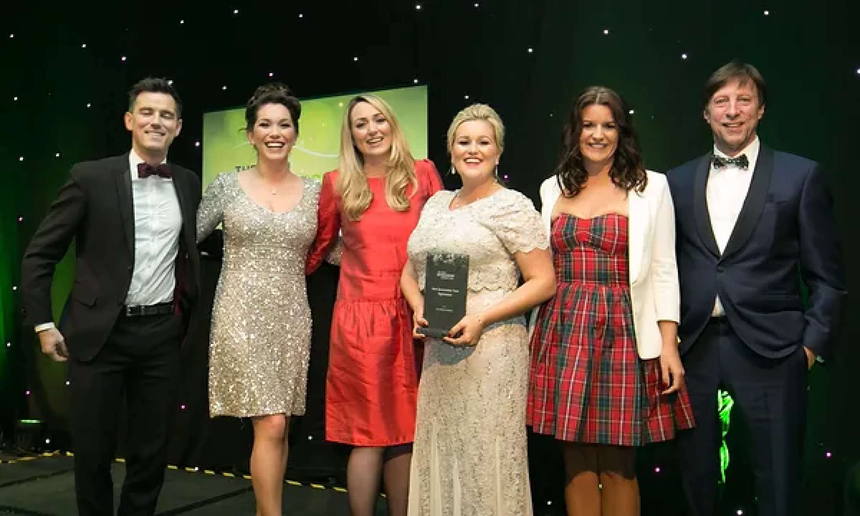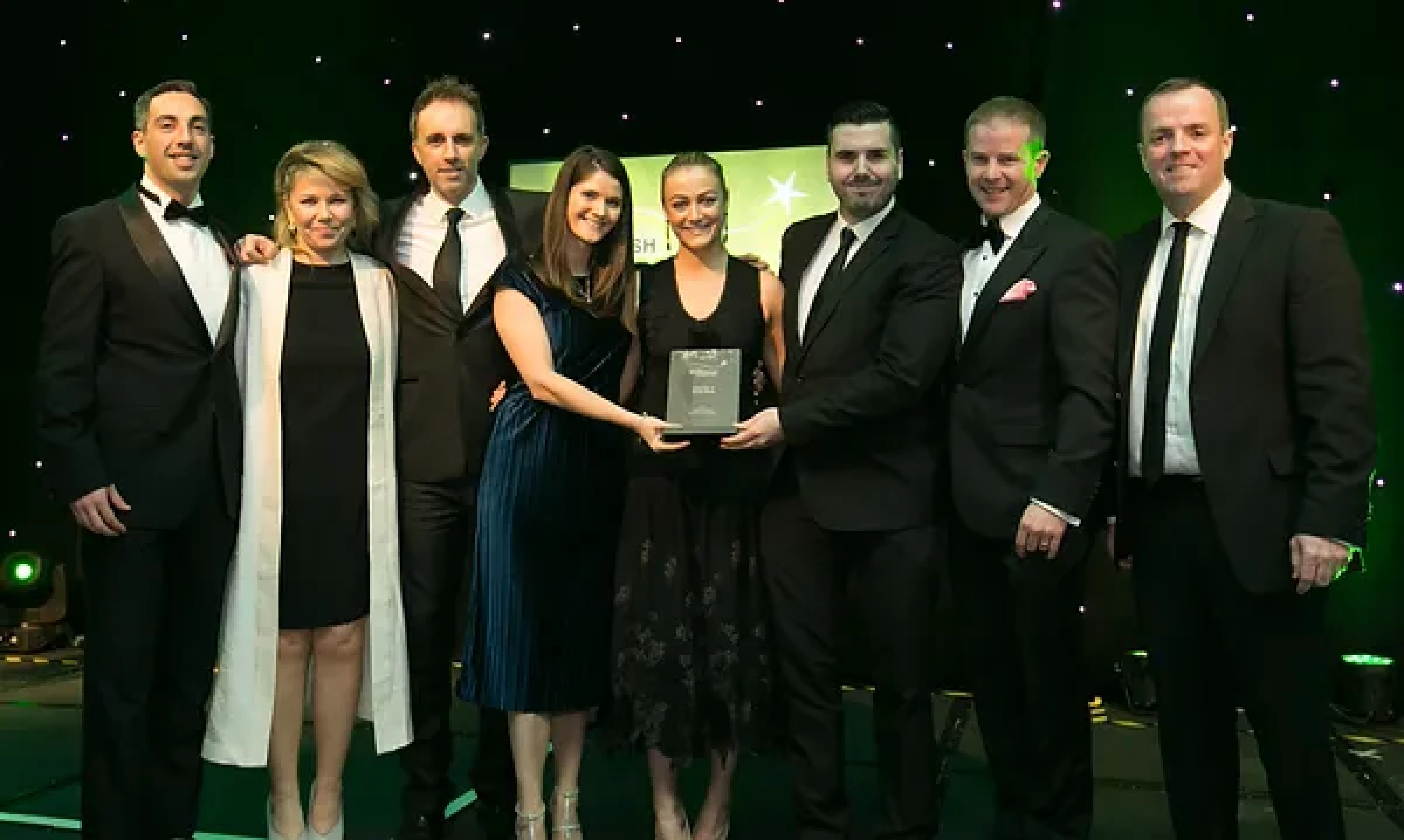 Sean McAuliffe, Co-Founder & Director, Sport Collective, presents the Best Sporting Event Sponsorship award to Littlewoods Ireland and Legacy Consultants team.