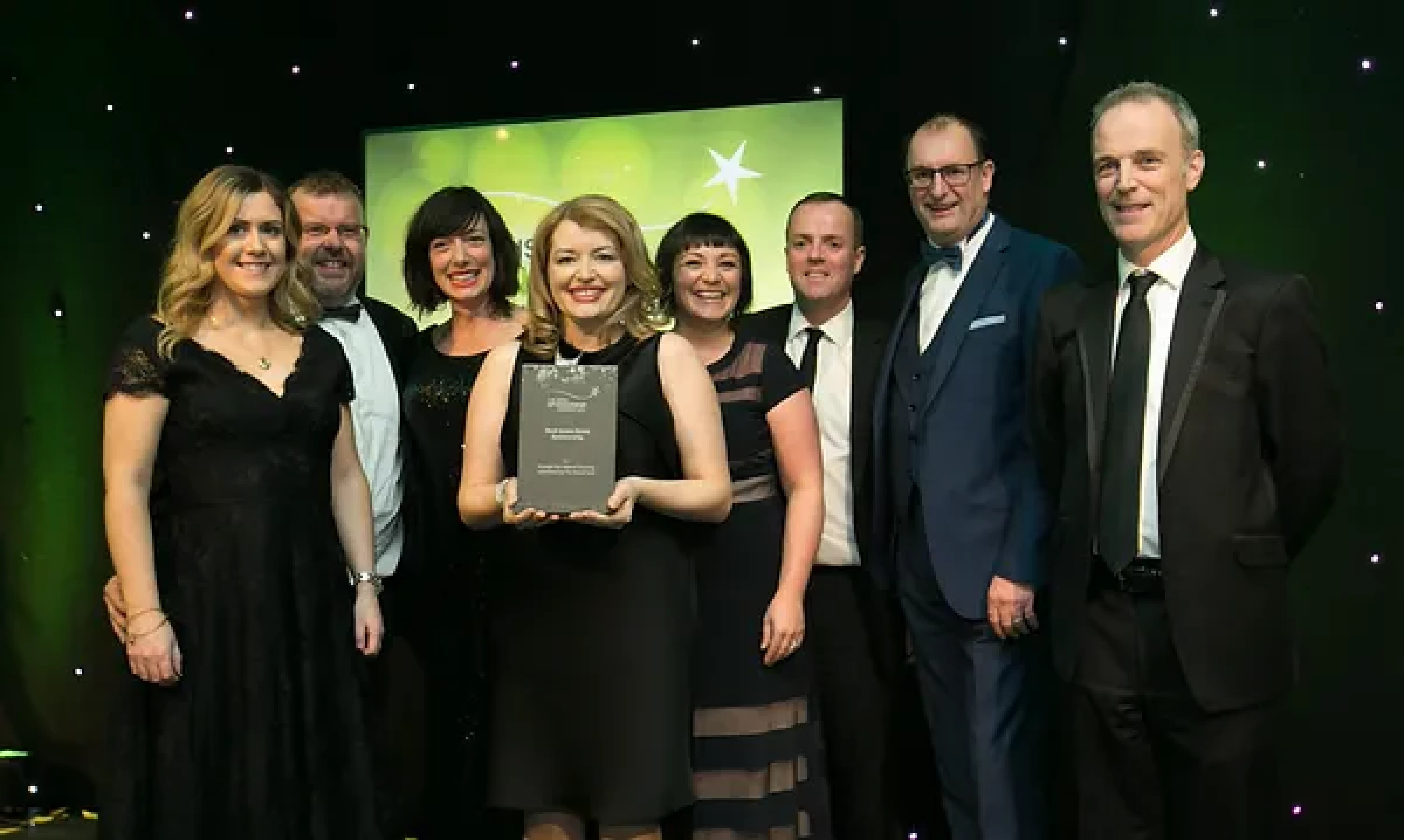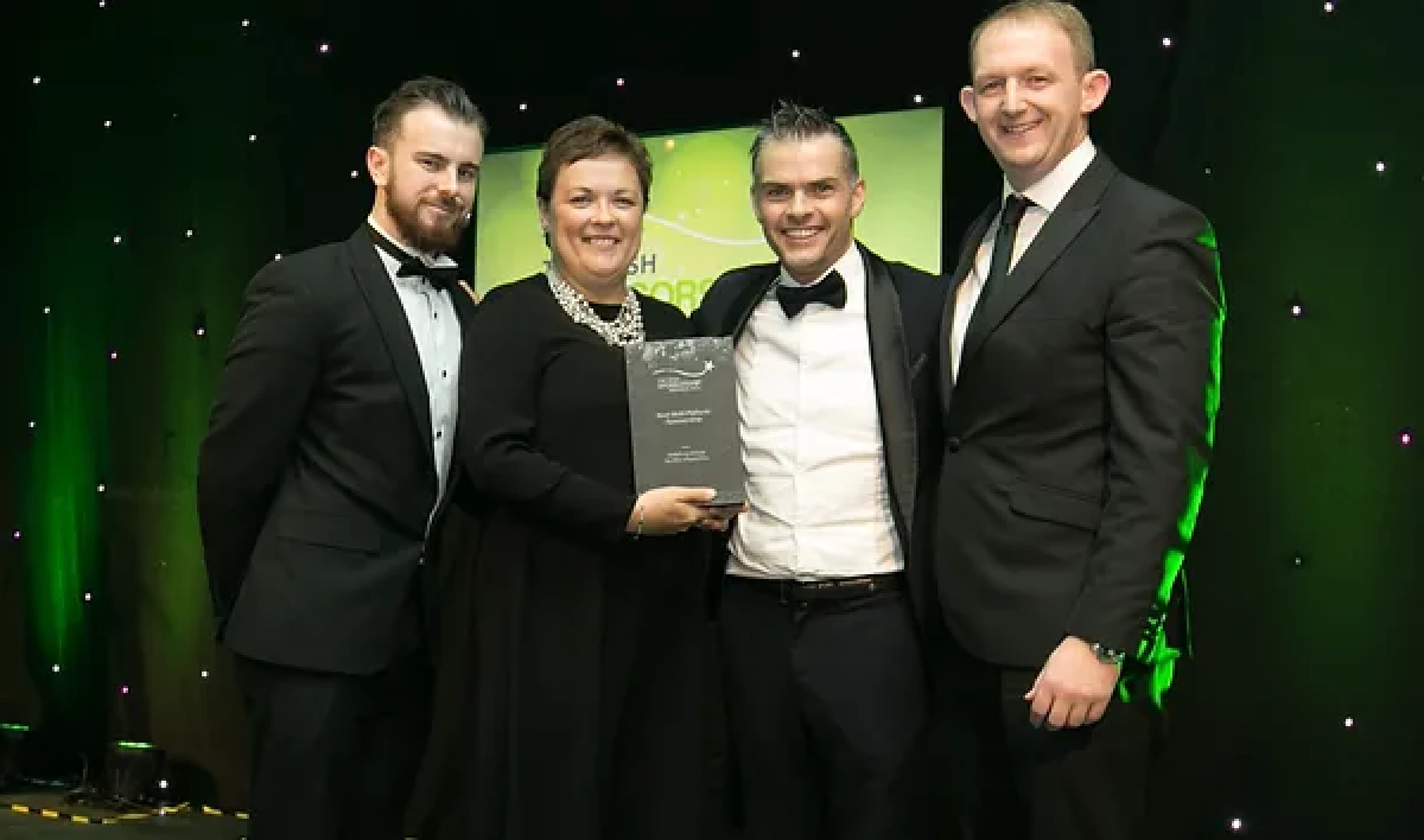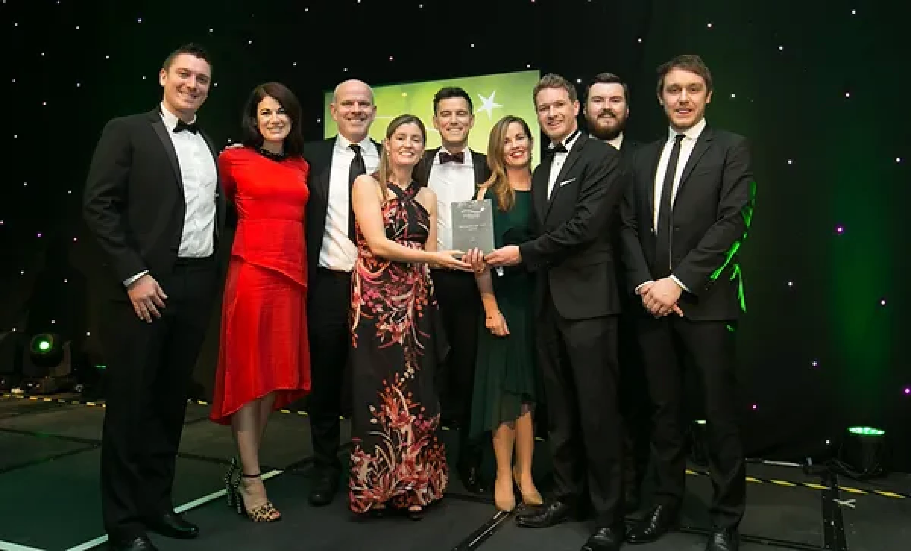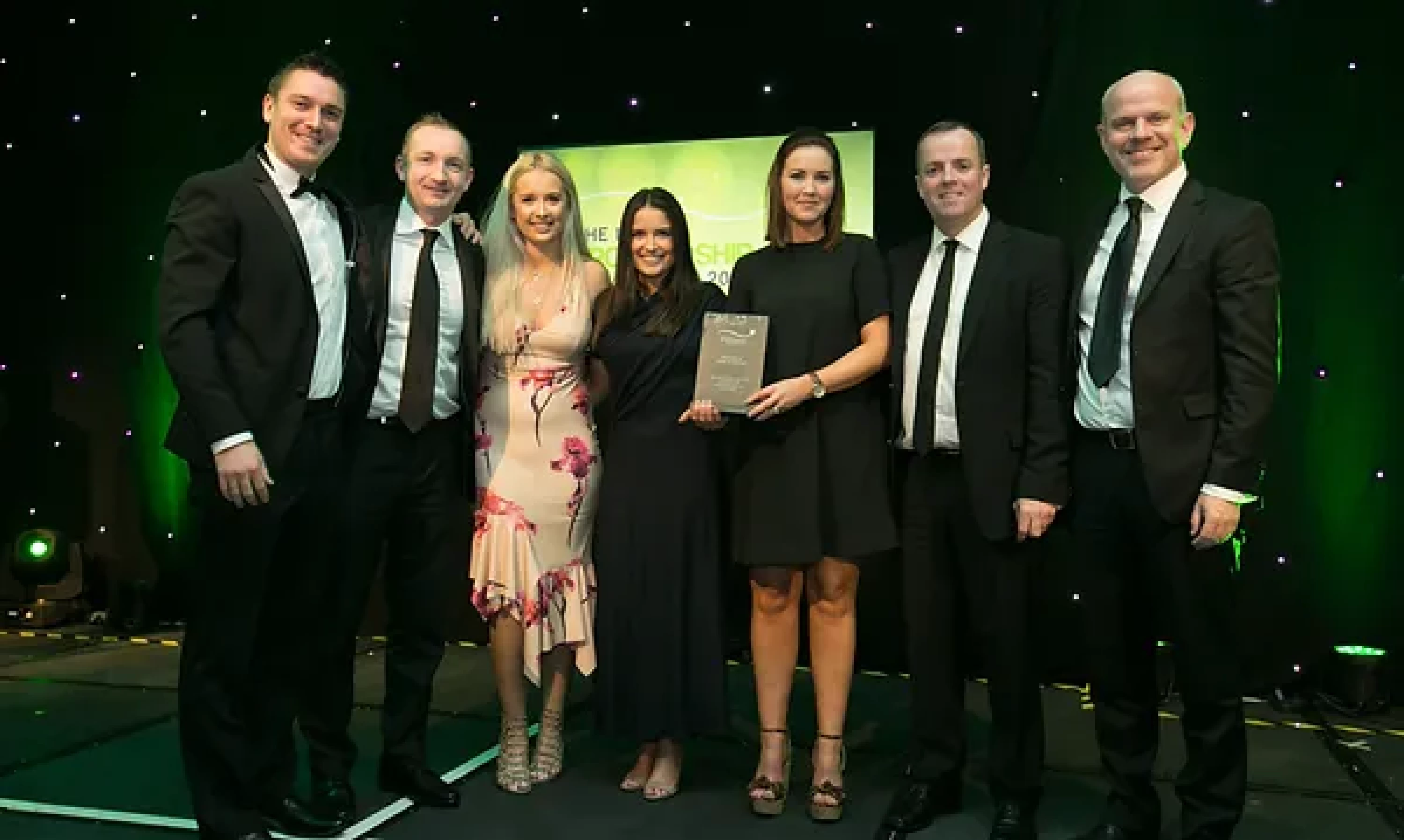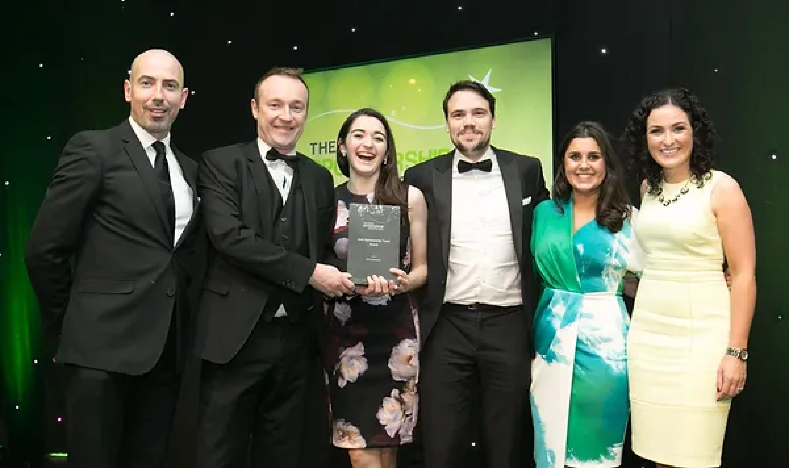 Sean McAuliffe, Co-Founder & Director, Sport Collective, presents the Best Sporting Event Sponsorship award to Littlewoods Ireland and Legacy Consultants team.