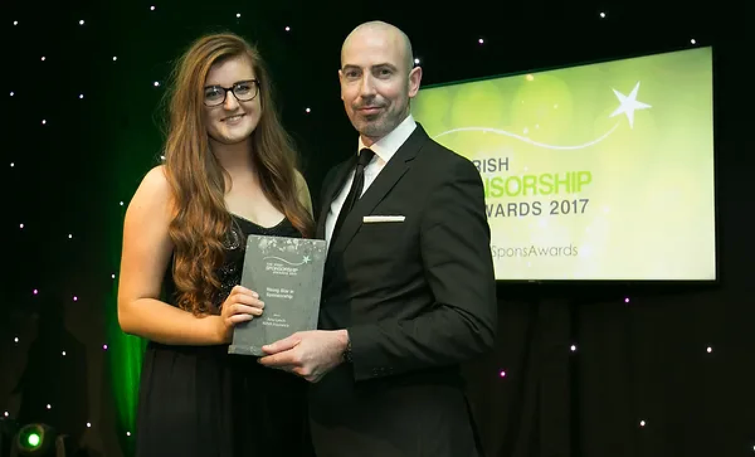 Sean McAuliffe, Co-Founder & Director, Sport Collective (UK), presents the Rising Star in Sponsorship award to Amy Lynch, AVIVA Insurance.
