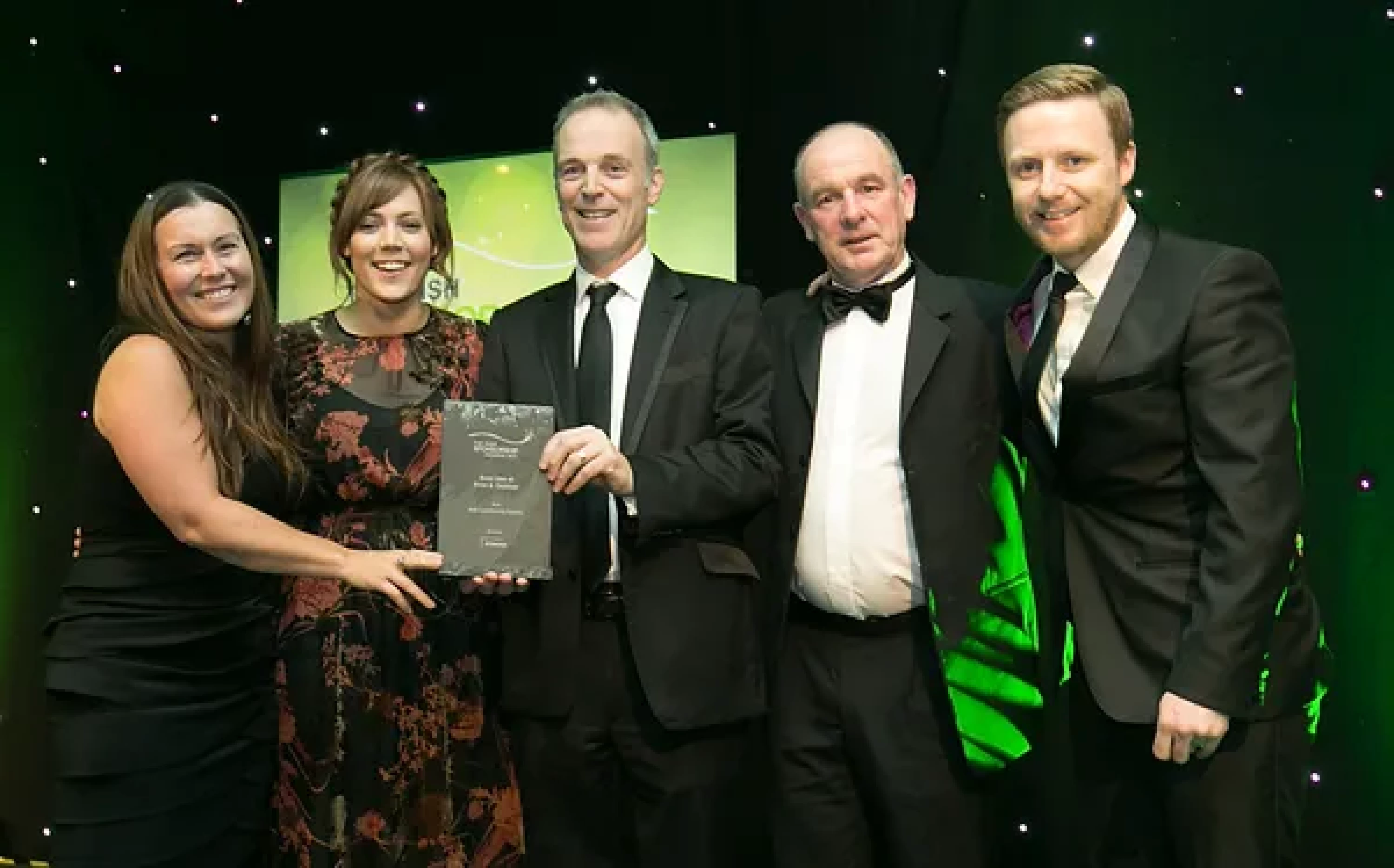 Neil MacDermott, Head of Solutions, Media Central, presents the Best Multi-Platform Sponsorship award to Paddy Carberry, Paula Murphy and Gerry Nixon, Vodafone.