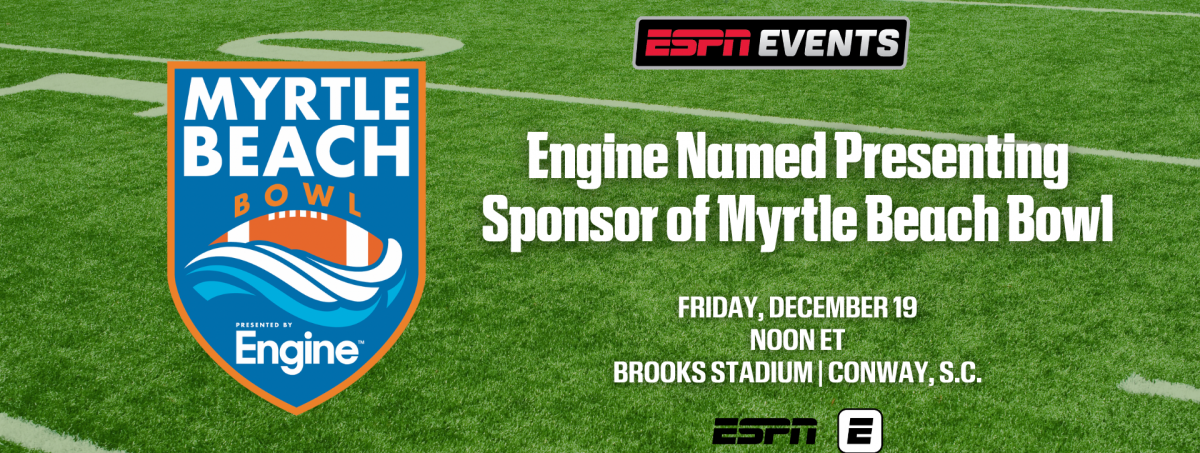 The Myrtle Beach Bowl, owned and operated by ESPN, draws teams from NCAA Division I conferences, including Conference USA, the Mid-American Conference, and the Sun Belt Conference. In addition to sports exposure, the partnership allows Engine to reach more than 60 million viewers and 650,000 annual attendees across ESPN Events’ portfolio.